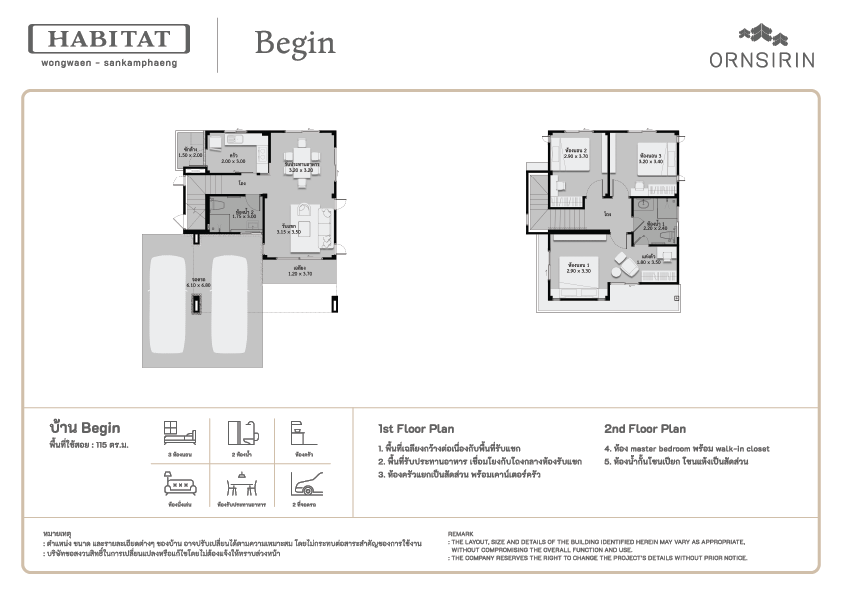 บ้าน 2 ชั้นบนพื้นที่ 115 ตร.ม. พื้นที่เฉลียงกว้าง ห้องนอนใหญ่ Master Bedroom พร้อม Walk-In Closet