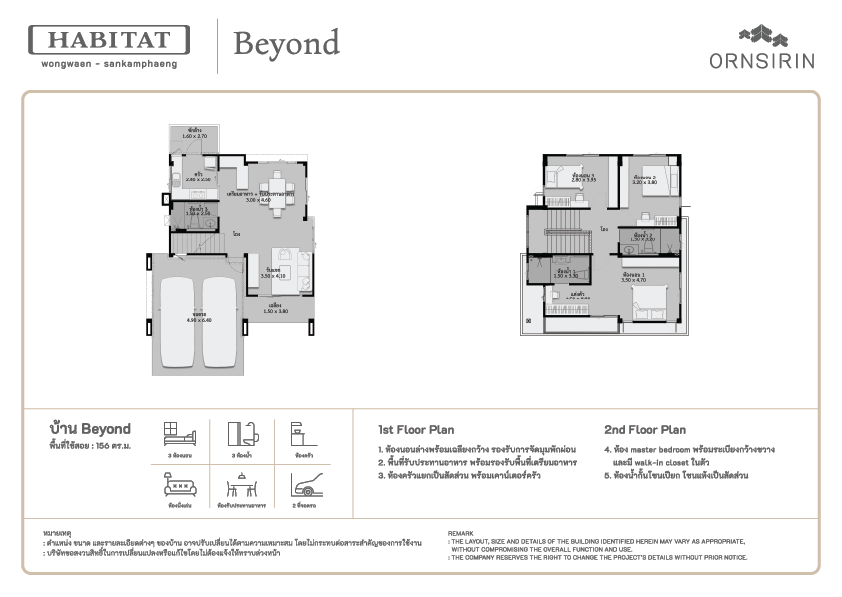 บ้าน 2 ชั้นบนพื้นที่ 156 ตร.ม. พื้นที่เฉลียงกว้าง ห้องนอนใหญ่ Master Bedroom พร้อม Walk-In Closet
