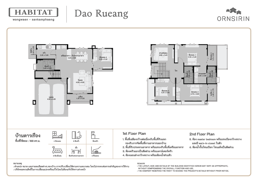 บ้าน 2 ชั้นบนพื้นที่ 188 ตร.ม. พื้นที่เฉลียงกว้าง ห้องนอนใหญ่ Master Bedroom พร้อม Walk-In Closet