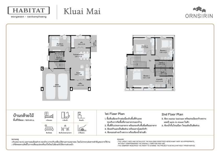 บ้าน 2 ชั้นบนพื้นที่ 163 ตร.ม. พื้นที่เฉลียงกว้าง ห้องนอนใหญ่ Master Bedroom พร้อม Walk-In Closet