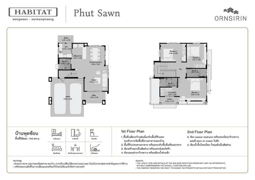 บ้าน 2 ชั้นบนพื้นที่ 145 ตร.ม. พื้นที่เฉลียงกว้าง ห้องนอนใหญ่ Master Bedroom พร้อม Walk-In Closet