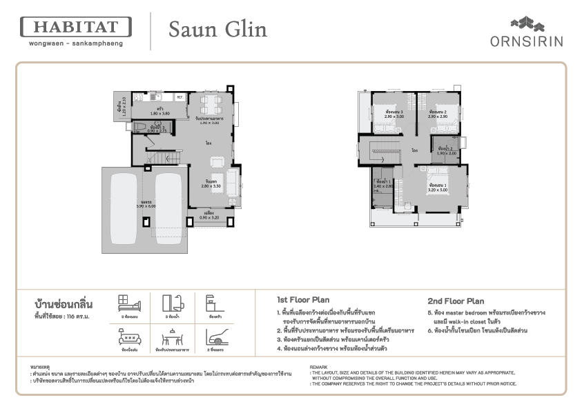 บ้าน 2 ชั้นบนพื้นที่ 116 ตร.ม. พื้นที่เฉลียงกว้าง ห้องนอนใหญ่ Master Bedroom พร้อม Walk-In Closet